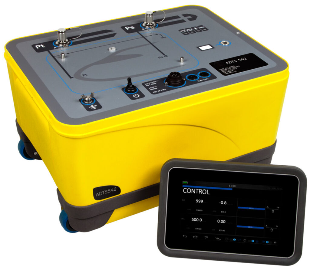 The Druck ADTS550F Series Air Data Test Sets are portable flight line pitot static testers with large pitot static volume capability for use on a wide range of aircraft, from light aircraft to wide body passenger and freight aircraft. It provides pitot static air data validation, leak testing, fault-finding, and avionics instrumentation testing.