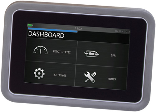 The ADTS Touch is a removable, robust wireless hand terminal that communicates to the test set via secure Bluetooth wireless technology. This technology and the innovative design of the ADTS Touch remove the need to run cables or hoses into the cockpit. A second ADTS Touch hand terminal can be used as an indicator.