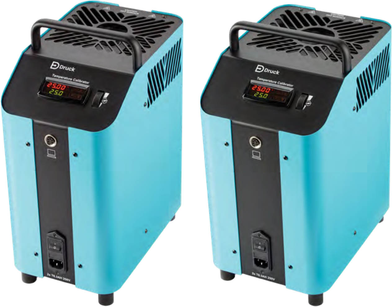 The Druck TC Series Dry Block Temperature Calibrator is a solution for testing temperature devices over a range of temperatures from -35 to 650°C (-30°F to 1200°F). These dry block calibrators incorporate the latest metal block and electronic control technology, with a choice of precision bored well inserts to accommodate a wide range of test devices. The two models available are the DryTC165, which generates temperatures from -35°C to 165°C, and the DryTC650, which generates temperatures from ambient to 650°C. Both models provide high accuracy, excellent set-point stability, and rapid heating and cooling times.