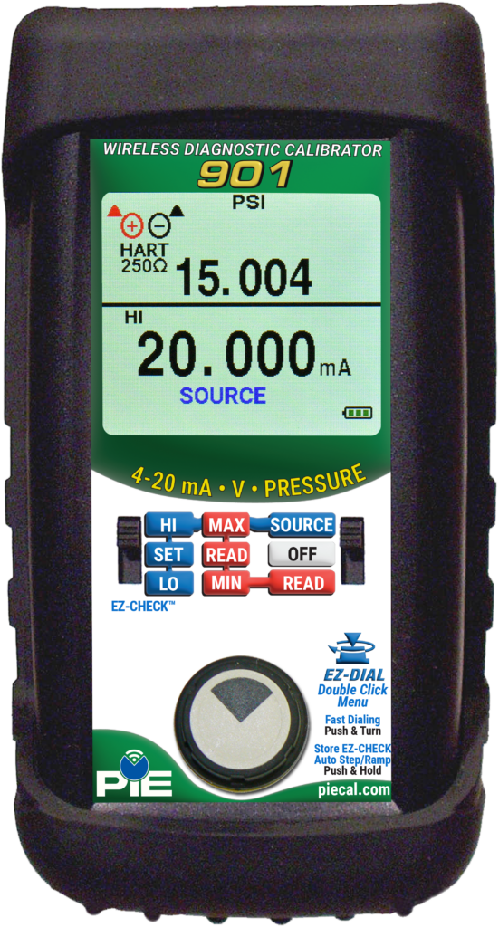 The calibrator has an easy-to-read display and simple-to-use time saving features including step, span, and valve check.