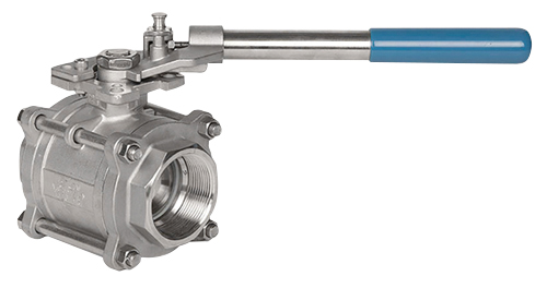 The DM4500 is a three-piece, direct mount valve that features quality investment casting body and end caps, an ISO 5211 direct mounting pad, a locking function, and adjustable stem packing. It is available in stainless steel or carbon steel, is silicone-free, and offers a blow-out proof stem design.