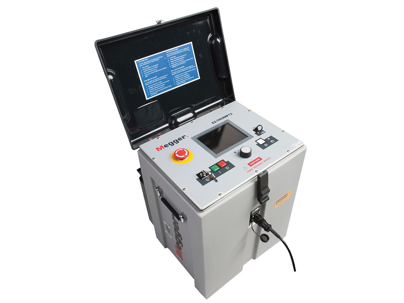 This product is equipped with a 5.7-inch HiBrite TFT LCD display, the systems provide clear, easy-to-read results even in bright outdoor conditions. The EZ-Thump 4kV user-friendly interface includes an emergency stop function, key-switch interlock, and the ability to operate both via a rotary control knob and the simple E-Tray GUI. The unit has a memory for storing 1000 traces, users can quickly access past results. The EZ-Thump 4kV units are ideal for both fault prelocation and pinpointing, making them a reliable choice for cable fault detection and diagnostics.