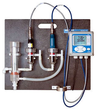The Rosemount FCL Free Chlorine System is intended for the determination of free chlorine in fresh water. The system consists of the sensor(s), an analyzer (either 56 Series Analyzers/ Controllers or 1056 Dual Input Analyzer) and constant head overflow cup to control sample flow. All components are mounted on a back plate. Unlike other free chlorine analyzers the Rosemount FCL doesn’t use sample conditioning systems or messy reagents to control pH. The Rosemount FCL analyzer automatically compensates for changes in the pH of the sample.