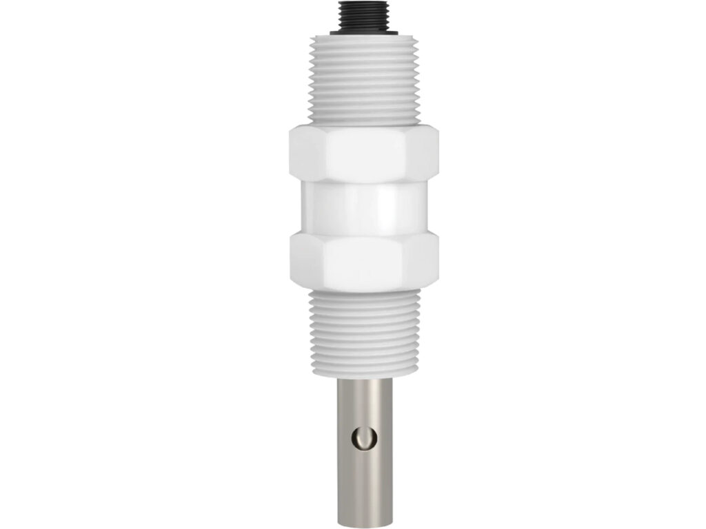 The Rosemount TCL Total Chlorine Analyzer is a sample conditioning system that permits a single sensor to measure total chlorine in water. The sample conditioning system continuously injects a solution of acetic acid (vinegar) and potassium iodide into the sample. The acid lowers the pH to between 3.5 and 4.5 and allows total chlorine in the sample to quantitatively react with the potassium iodide concentration, and the analyzer displays the total oxidant concentration in ppm as Cl 2.