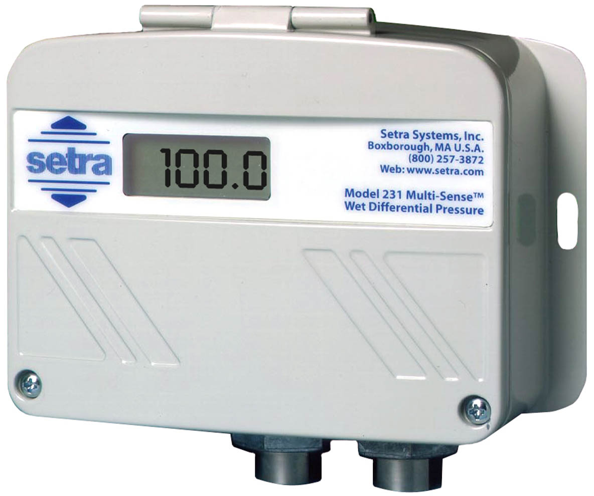 The Setra 231 Pressure Transducer Multi-Sense Wet-to-Wet differential pressure transducer all-inclusive design provides users with field accessible ranging, choice of output and field zeroing.