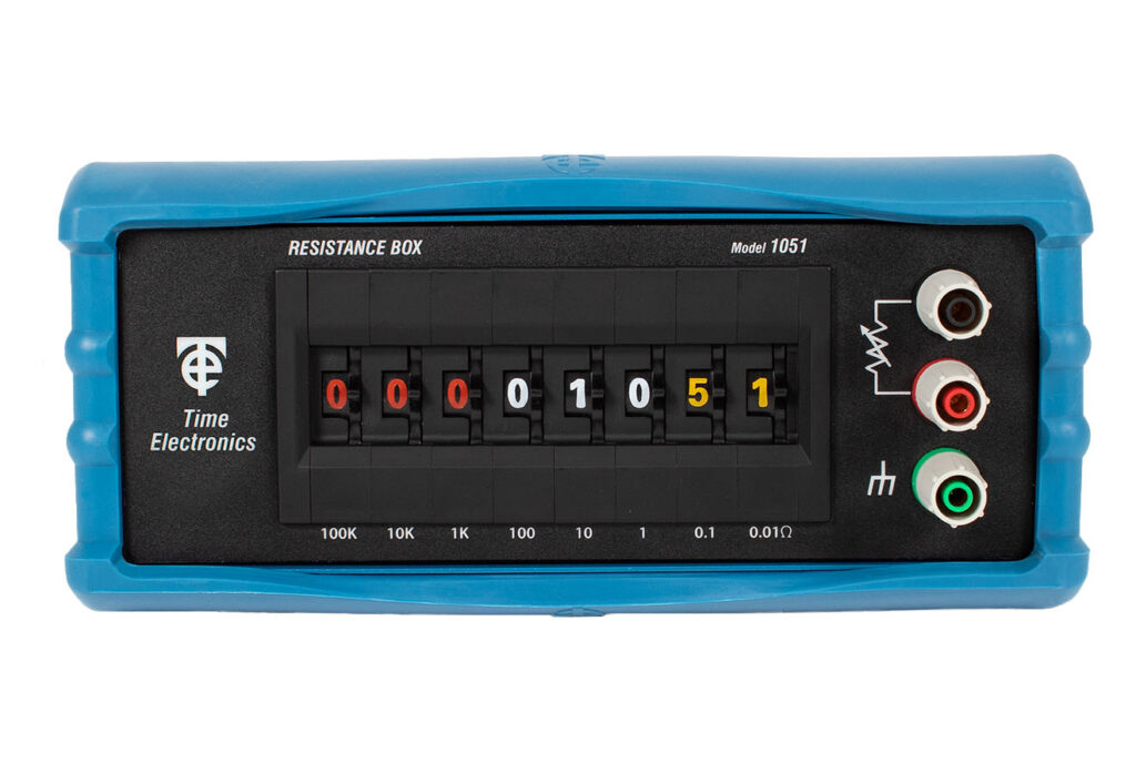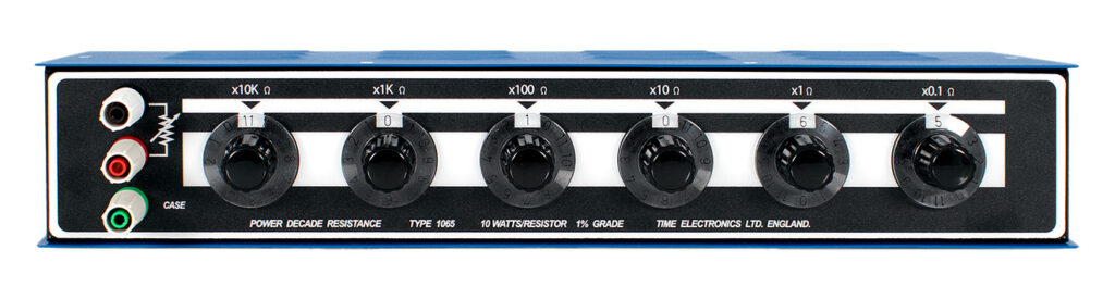 The Time Electronics 1041 decade resistance box offers small increment steps, 0.01Ω, over a range of 0.01Ω to 1kΩ. Special attention has been given to the reliability of operation for the 1041. A special multiple gold contact arrangement ensures low contact resistance and continued operation even if a contact fails.