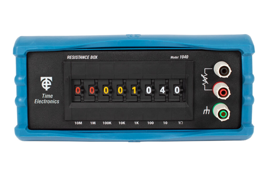 The Time Electronics 1051 decade resistance box offers small increment steps, 0.01Ω, over a range of 0.01Ω to 1MΩ. Special attention has been given to the reliability of operation for the 1051. A special multiple gold contact arrangement ensures low contact resistance and continued operation even if a contact fails.