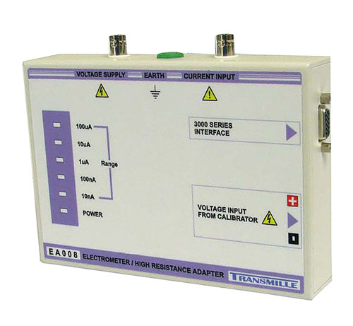 The Transmille EA013 pico amp source adapter provides accurate calibration of sensitive electrometers and low level pico amp meters safely and quickly. The unique circuit design, converts the accurate voltage output from the calibrator into low noise precision currents without the use of destructive high voltages and unstable high value resistors typically used.